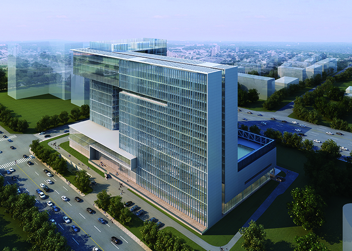 東景五星級酒店及辦公樓項目位于貴陽市觀山湖區(qū),基地東鄰貴陽市行政中心,北鄰鋁鎂設(shè)計院,南鄰貴州移動指揮調(diào)度中心,西向陽森房產(chǎn),地塊基本呈矩形,項目總用地面積24966平方米,總建筑面積99284平方米,其中地下建筑面積41915平方米。地上建筑面積共57369平方米,地下部分共計4層,為停車庫及酒店配套用房。地上部分由一棟結(jié)構(gòu)總高64.4m的14層辦公樓和一棟結(jié)構(gòu)總高68.8m的16層酒店組成,兩棟塔樓平面呈L型布置,結(jié)構(gòu)形式均為現(xiàn)澆框架剪力墻結(jié)構(gòu),辦公樓頂部采用鋼結(jié)構(gòu)向外懸挑兩層,懸挑跨度為11.1m。辦公樓和酒店在頂部通過跨度為30m鋼結(jié)構(gòu)連接體相連,連接體在辦公樓側(cè)與混凝土柱鉸接相連,在酒店一側(cè)用滑移支座相連,滑移支座接罕遇地震下兩座單體最不利彈性位移進行設(shè)計,保證兩個單體在罕遇地震下不致相撞或脫開。