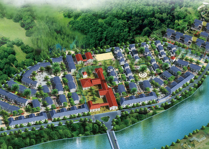 社會(huì)主義新農(nóng)村民居建設(shè),不是簡單地拷貝和復(fù)制中國傳統(tǒng)院落形式。運(yùn)用于本案,我們不是在進(jìn)行仿古建筑的設(shè)計(jì),我們摒棄過于復(fù)雜與太過傳統(tǒng)的斗拱、椽檁等建筑符號。抽取傳統(tǒng)院落中的白墻、青瓦、庭院等符號,重新融合構(gòu)置進(jìn)全新的建筑肌理之中,賦予現(xiàn)代院落以生命,使其融入現(xiàn)代生活,成為我們的生活中的一部分。在沿街的建筑設(shè)計(jì)中,采用聯(lián)排式、開敞式設(shè)計(jì),形成一種商業(yè)氛圍,與環(huán)境設(shè)計(jì)中的廣場、露天舞臺(tái)等一起,服務(wù)于旅游,讓游客不止成為過客,讓游客留下來,有玩、有住、有看,有紀(jì)念品買。