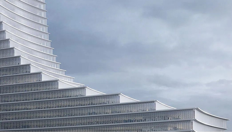 其錐形玻璃幕墻采用由 Other Spaces 工作室設計的遮陽面板和動態照明系統,將在天際線上形成一道引人注目的風景。