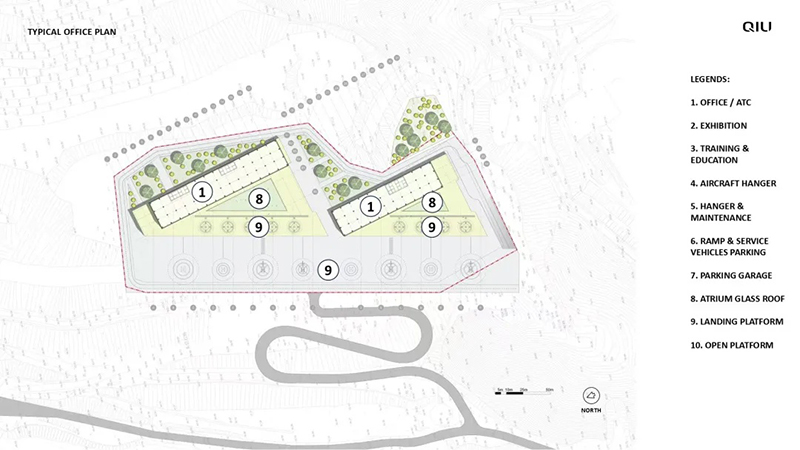 QIU受邀設計的深圳首個載人無人機港,將在未來成為大灣區低空商務旅行的新總部,兼備救援中心及未來電動垂直起降(eVTOL)測試基地。